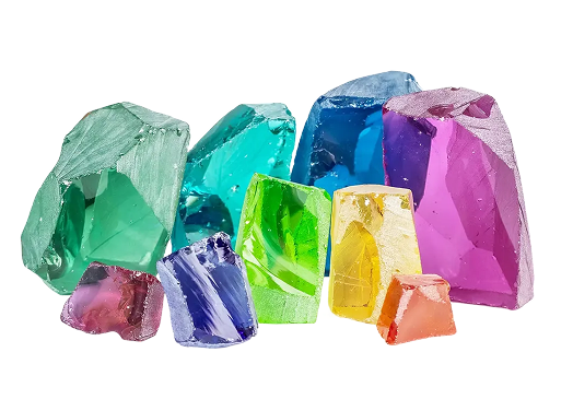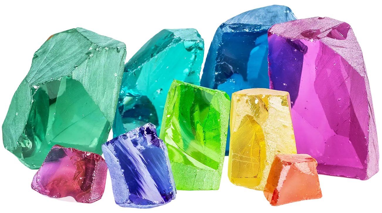 Цветное стекло – это оптически прозрачный материал, полученный путем плавления стекла соответствующего химического состава и обладающий более высокими, по сравнению с обычным стеклом, физико-химическими свойствами. Мы не используем вредные для здоровья примеси (свинец, мышьяк, сурьма, радий, полоний и другие радиоактивные элементы). Совокупность всех свойства нашего цветного стекла выводит его на лидирующую позицию на рынке бижутерии, изделий для дизайна и изготовления мозаики.